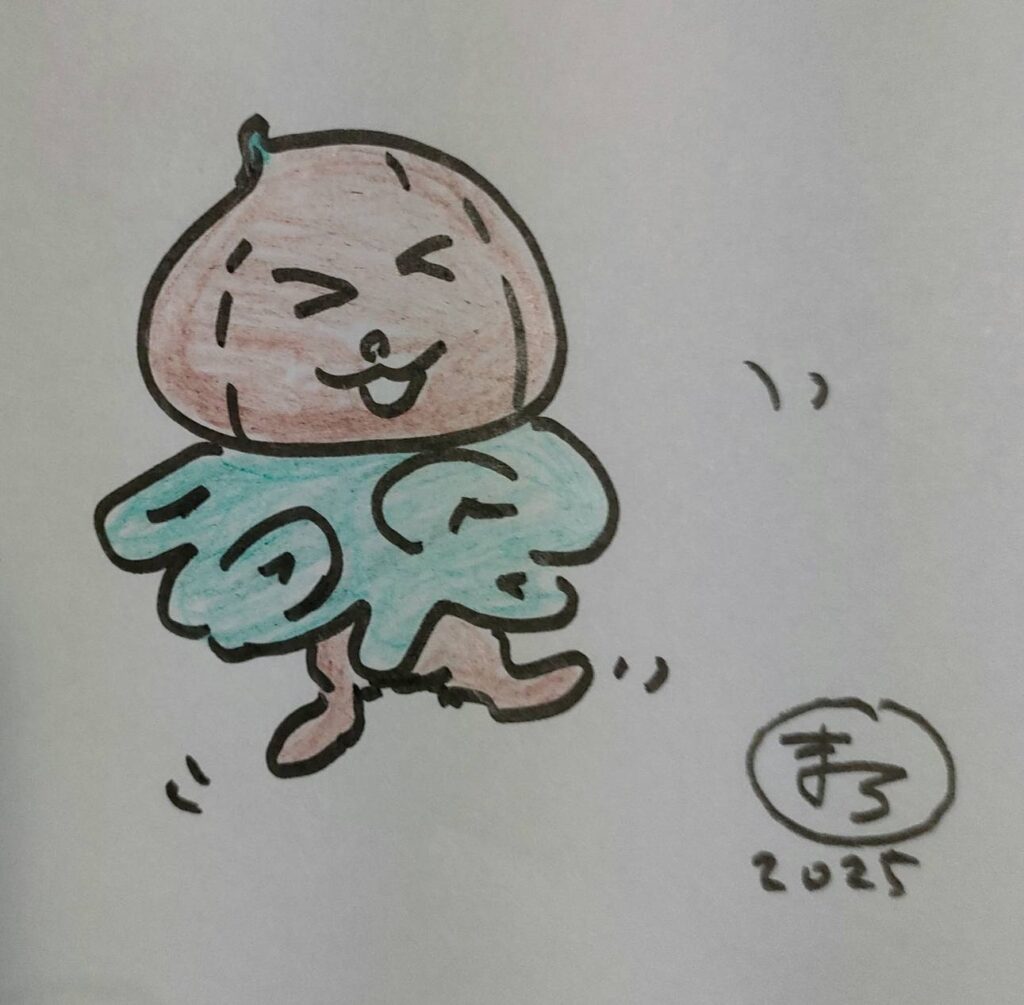 ちょっととぼけたときのこども今日も元気にさどっちゃらんどのみんなとなかよくしているよ