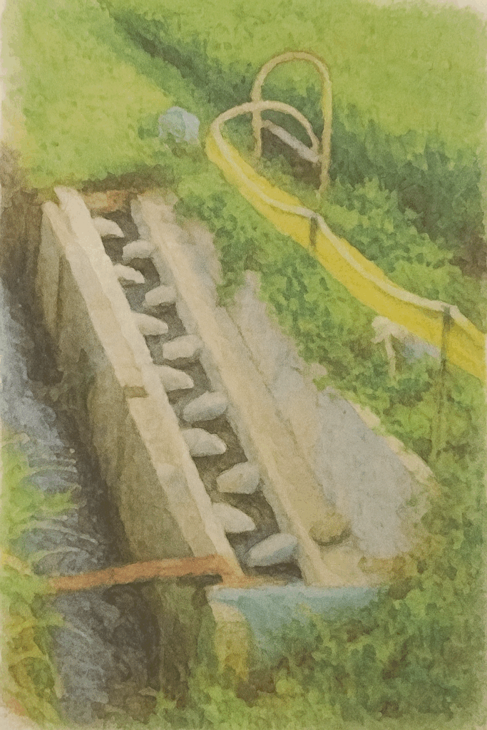 低いところにある水路から田んぼに魚が上がってこれるような魚道を作ります。