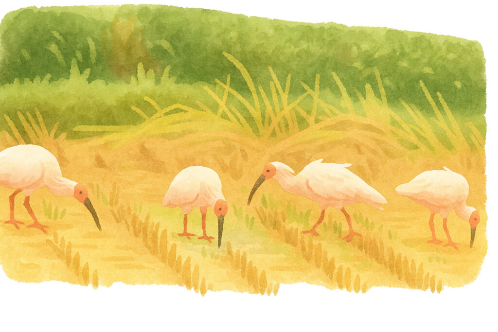 セクション1でお話ししたとおり、ねぐらを作る森があり、すぐ近くに餌場となる田んぼやため池などがあり、餌が豊富にあるわけです。